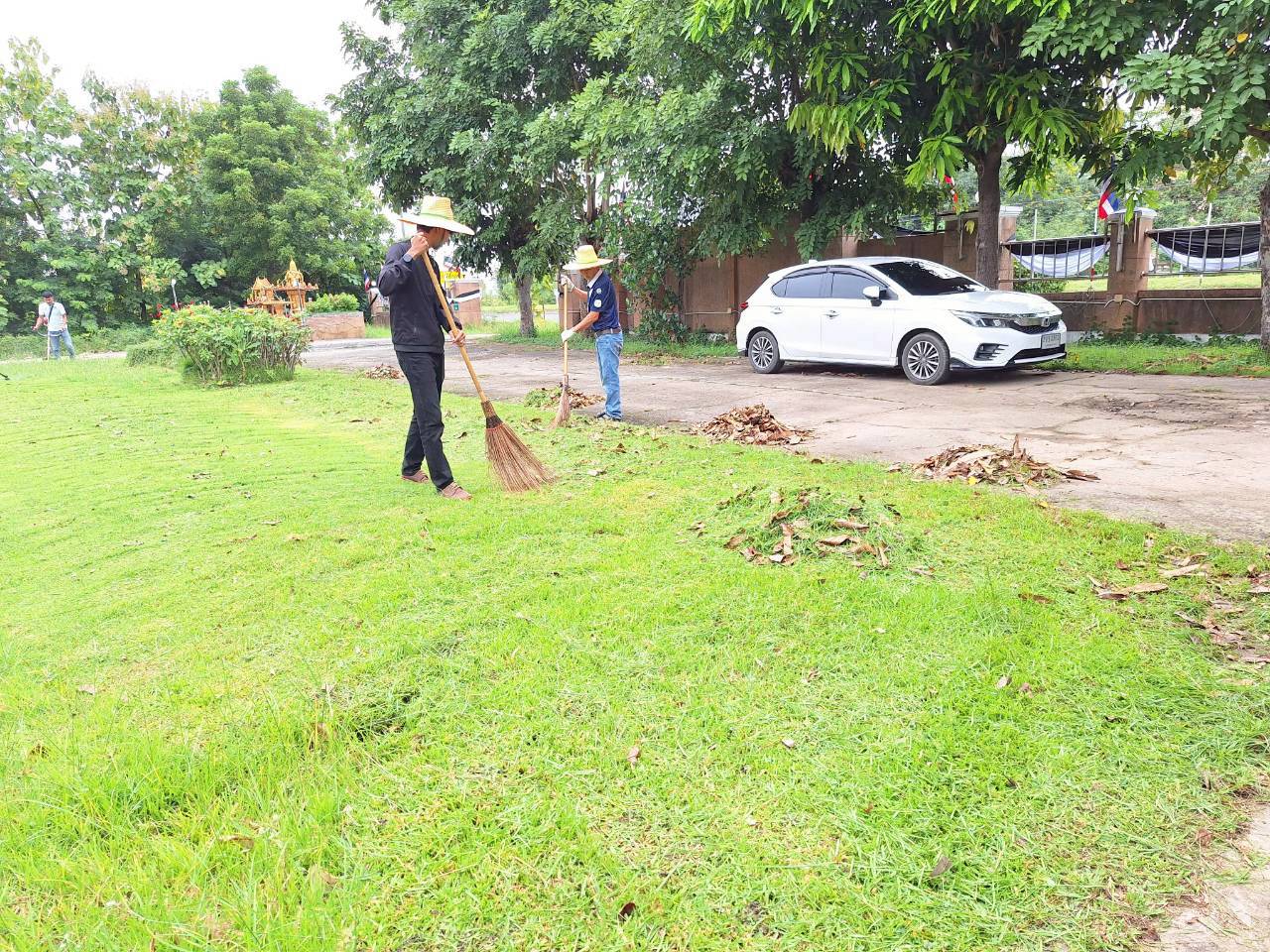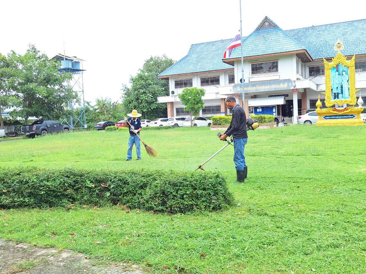 โดยรอบอาคารสำนักงาน ดำเนินการตัดกิ่งไม้ ตัดหญ้า และล้างพื้นภายในสำนักงาน จัดเตรียมสถานที่