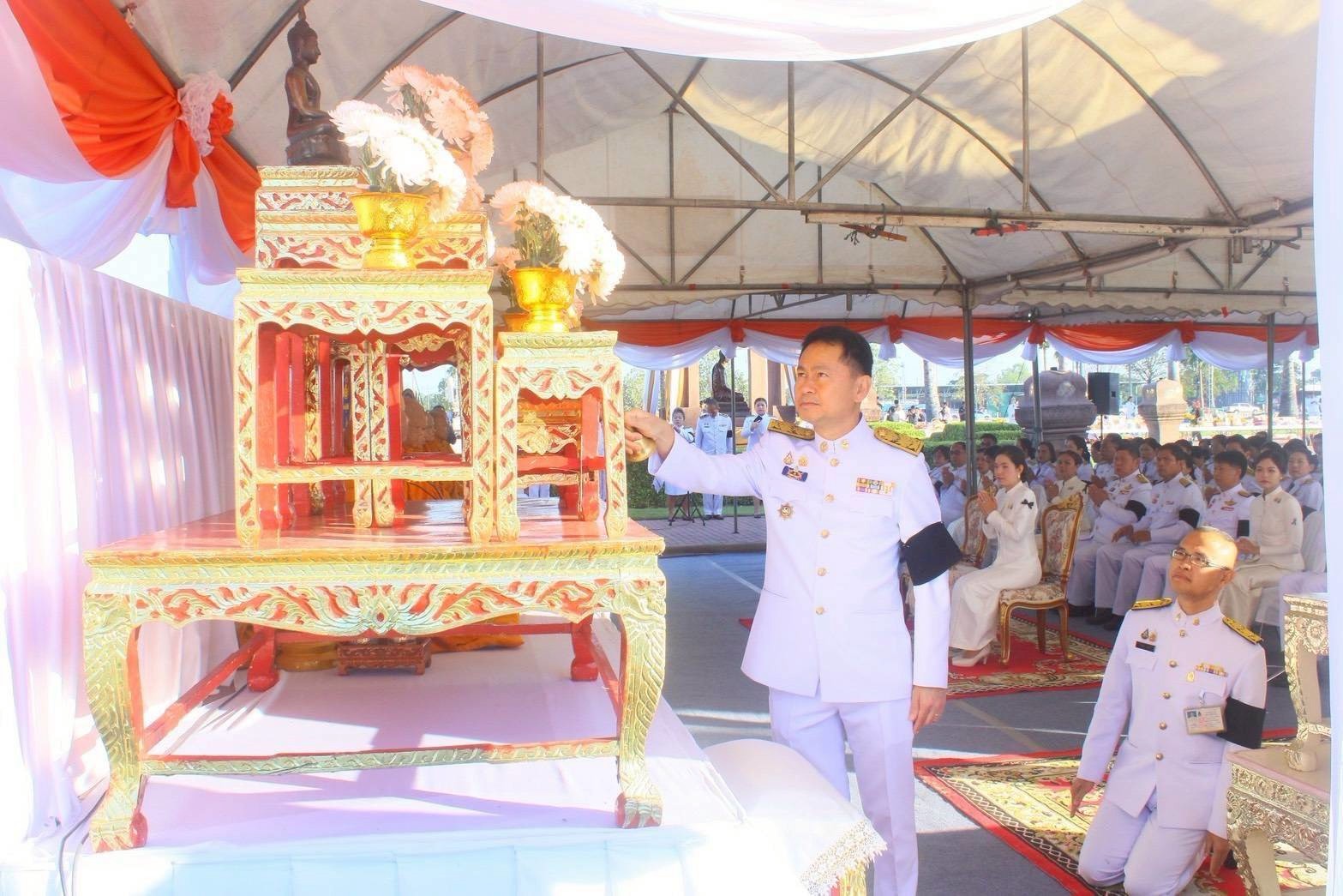 ประกอบด้วยพิธีทำบุญตักบาตรถวายพระราชกุศลและพิธีถวายพระพรชัยมงคล
