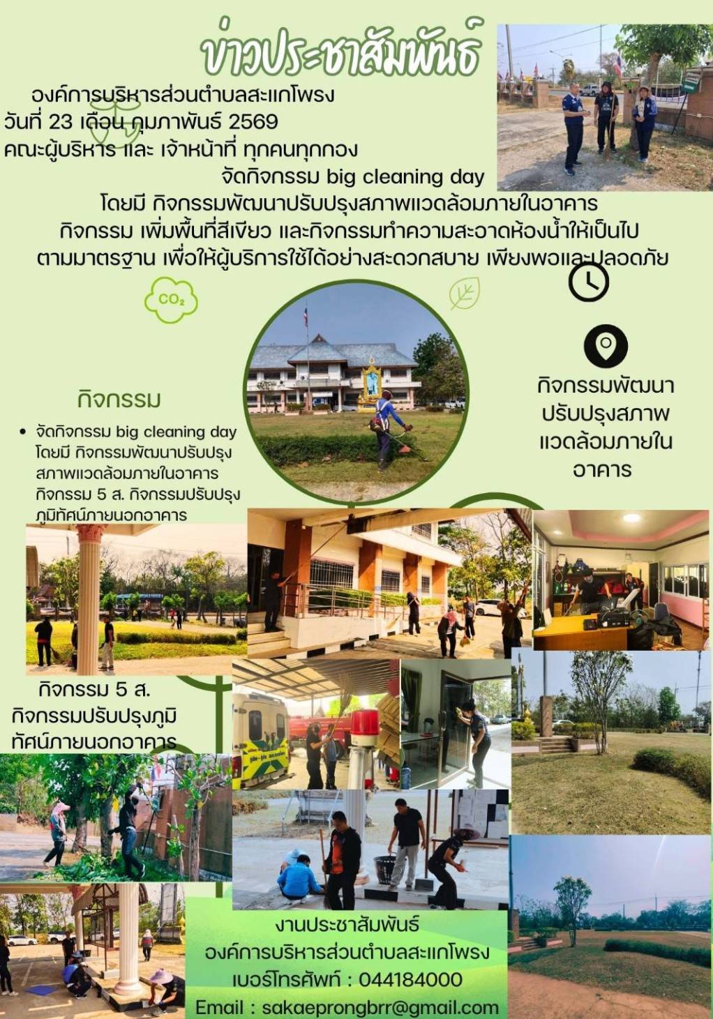 วันที่ 23 เดือน กุมภาพันธ์ 2569 จัดกิจกรรม big cleaning day
