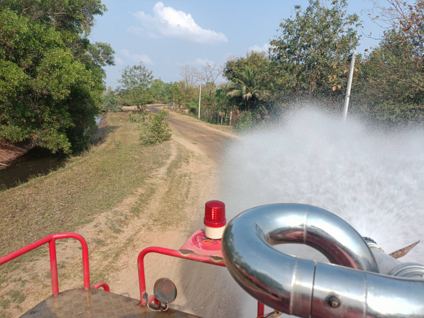 ฉีดน้ำทำความสะอาดถนนและฝุ่นละออง บริเวณเส้นทางตั้งแต่โรงแรมวีคอนเทจบริเวณแปลงโคกหนองนา หมู่ที่7