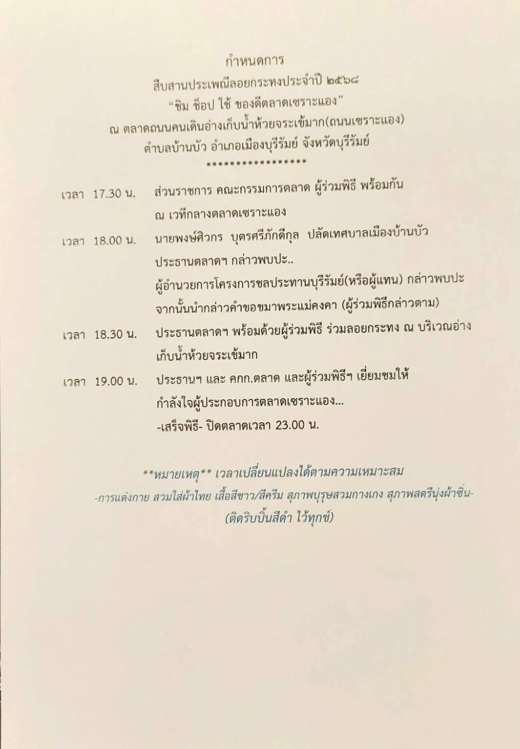 ตำบลบ้านบัว จังหวัดบุรีรัมย์ กำหนดการตามเอกสารแนบค่ะ