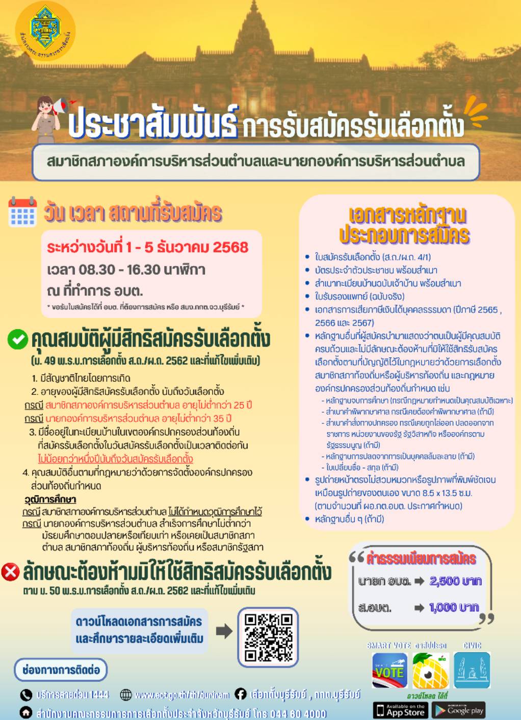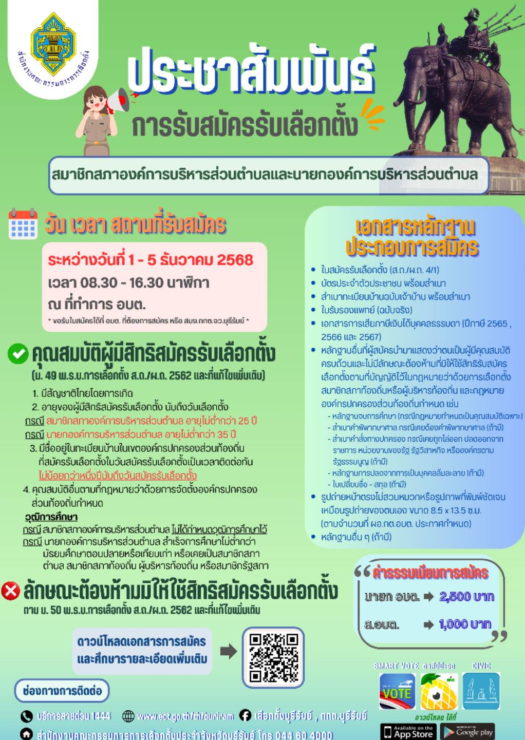 วันที่ 20 ต.ค.68 การประชาสัมพันธ์คุณสมบัติและลักษณะต้องห้ามของผู้สมัครรับเลือกตั้งสมาชิกสภาองค์การบริหารส่วนตำบลและนายกองค์การบริหารส่วนตำบล