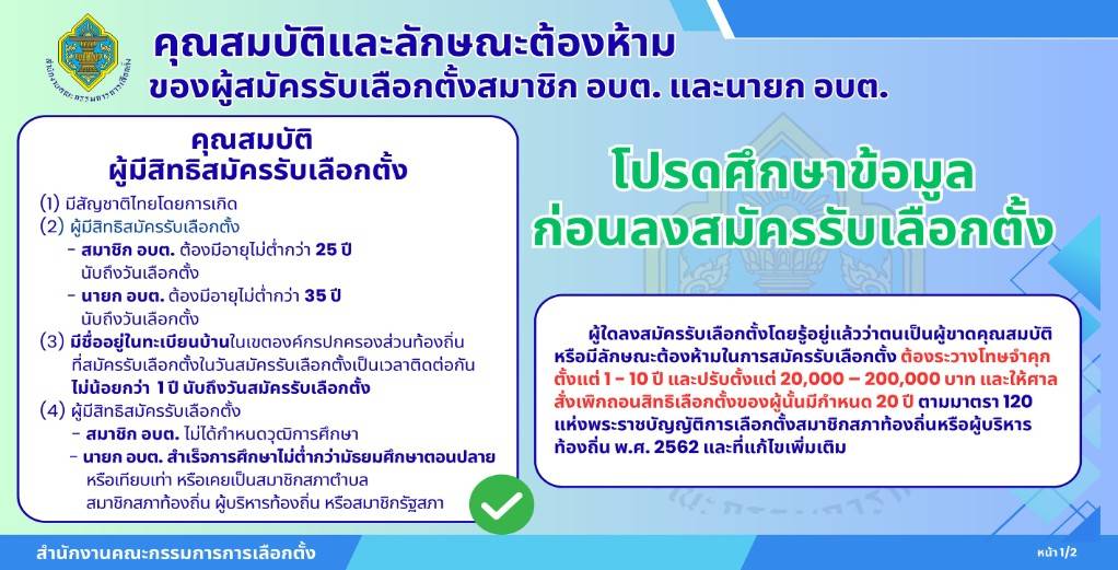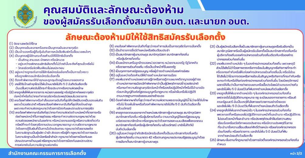 เรื่อง การประชาสัมพันธ์คุณสมบัติและลักษณะต้องห้ามของผู้สมัคร