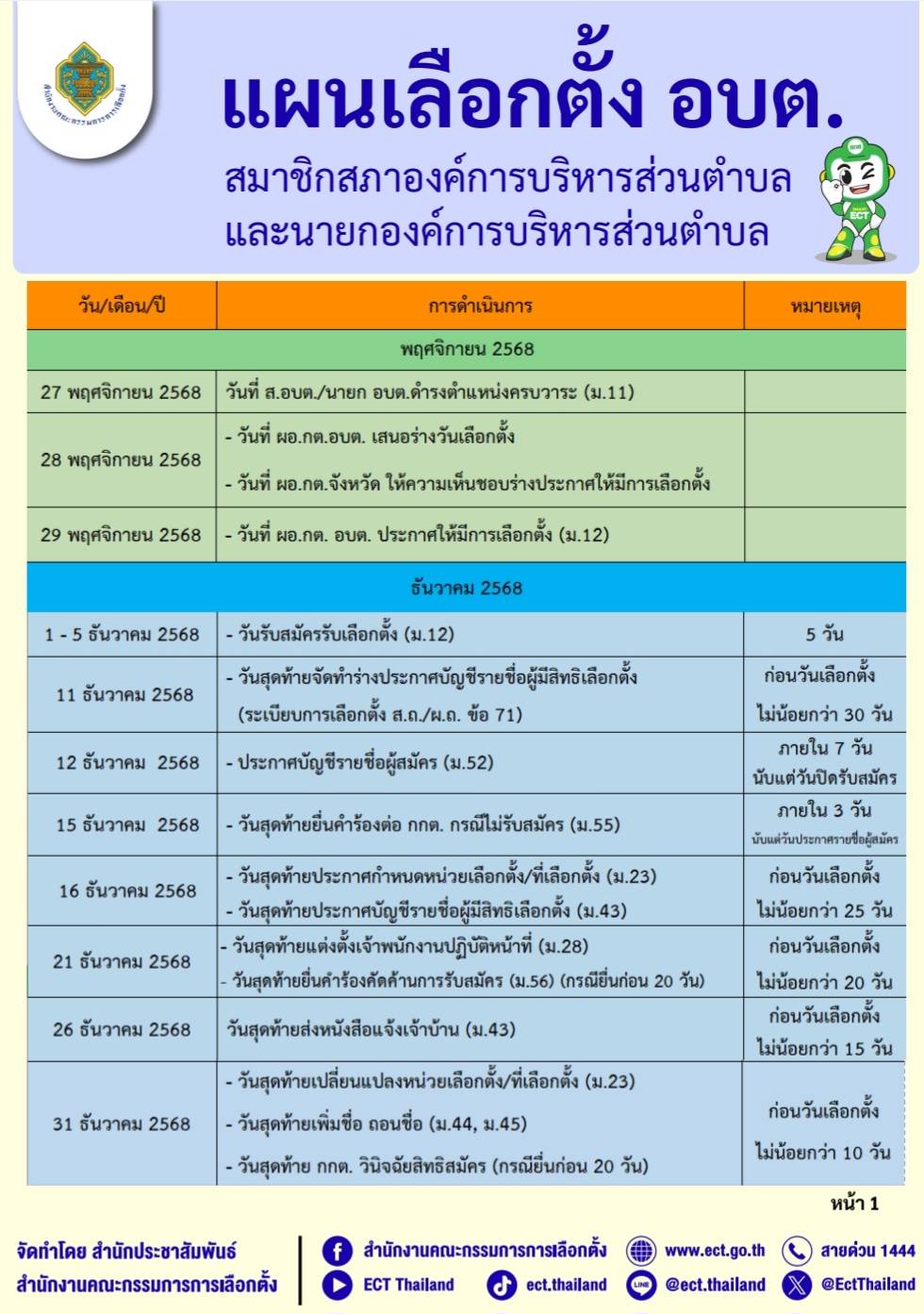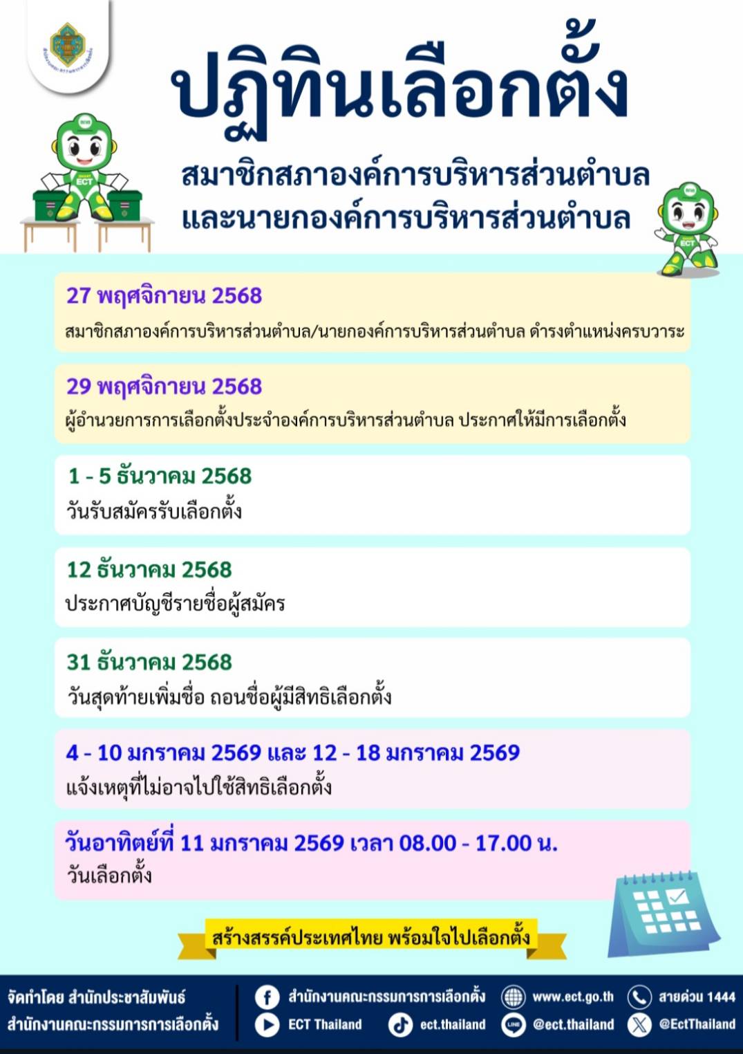 วันที่ 20 ตุลาคม 68 ประชาสัมพันธ์ปฏิทินการเลือกตั้งและแผนการเลือกตั้ง อบต.สมาชิกสภาองค์การบริหารส่วนตำบลและนายกองค์การบริการส่วนตำบล