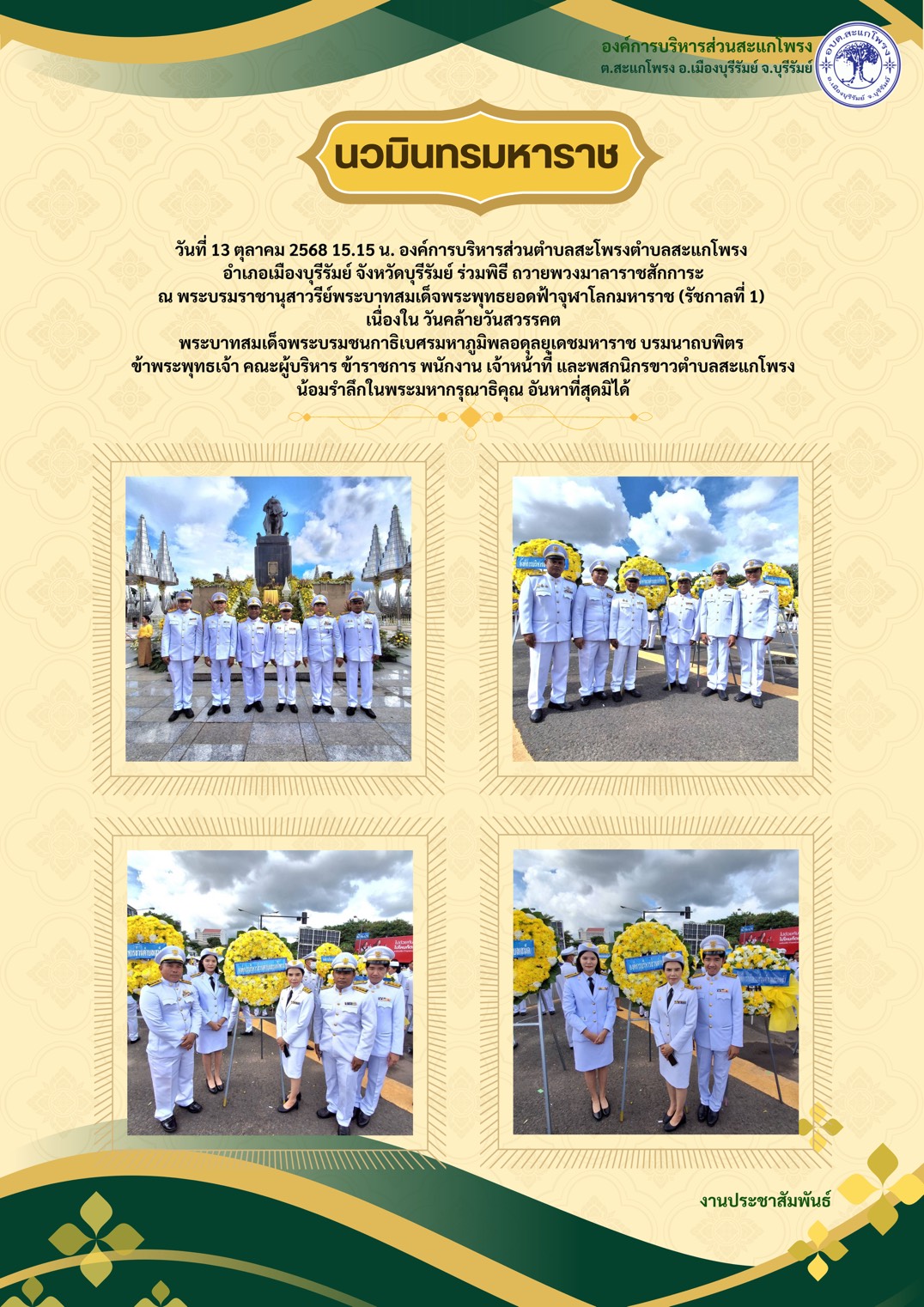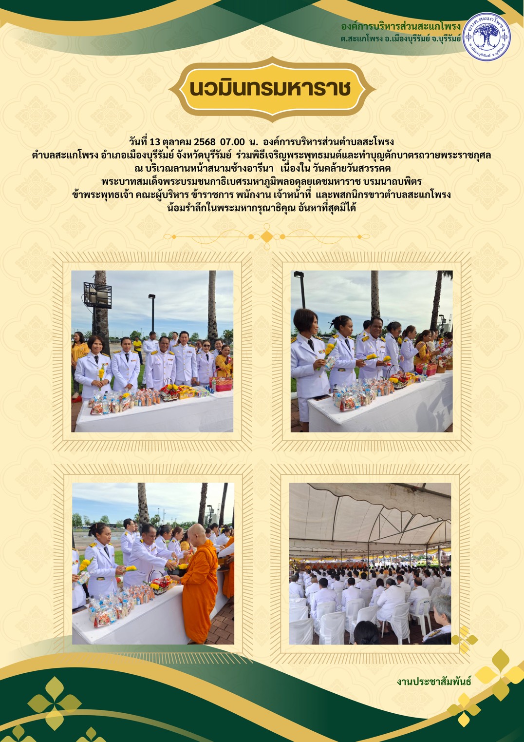 วันที่ 13 ตุลาคม 2568 องค์การบริหารส่วนตำบลสะแกโพรง ร่วมกิจกรรมเนื่องในวันนวมินทรมหาราช 14 ต.ค. 68