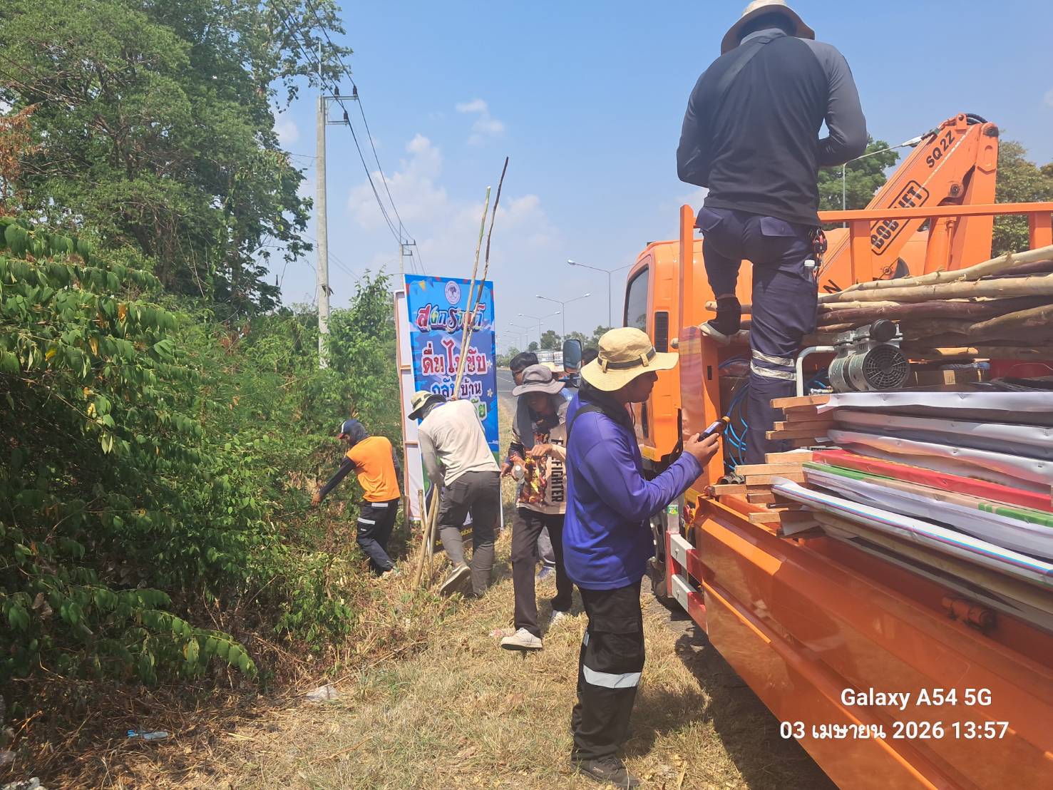 วันที่ 3 เมษายน 2569 ดำเนินการ ติดตั้งป้ายรณรงค์ป้องกันและลดอุบัติเหตุทางถนนช่วงเทศกาลสงกรานต์ พ.ศ.2569 03 เม.ย. 69