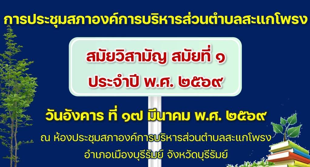 วันที่ 17 มีนาคม 2569 ประชุมสภาองค์การบริหารส่วนตำบลสะแกโพรง สมัยวิสามัญ สมัยที่1