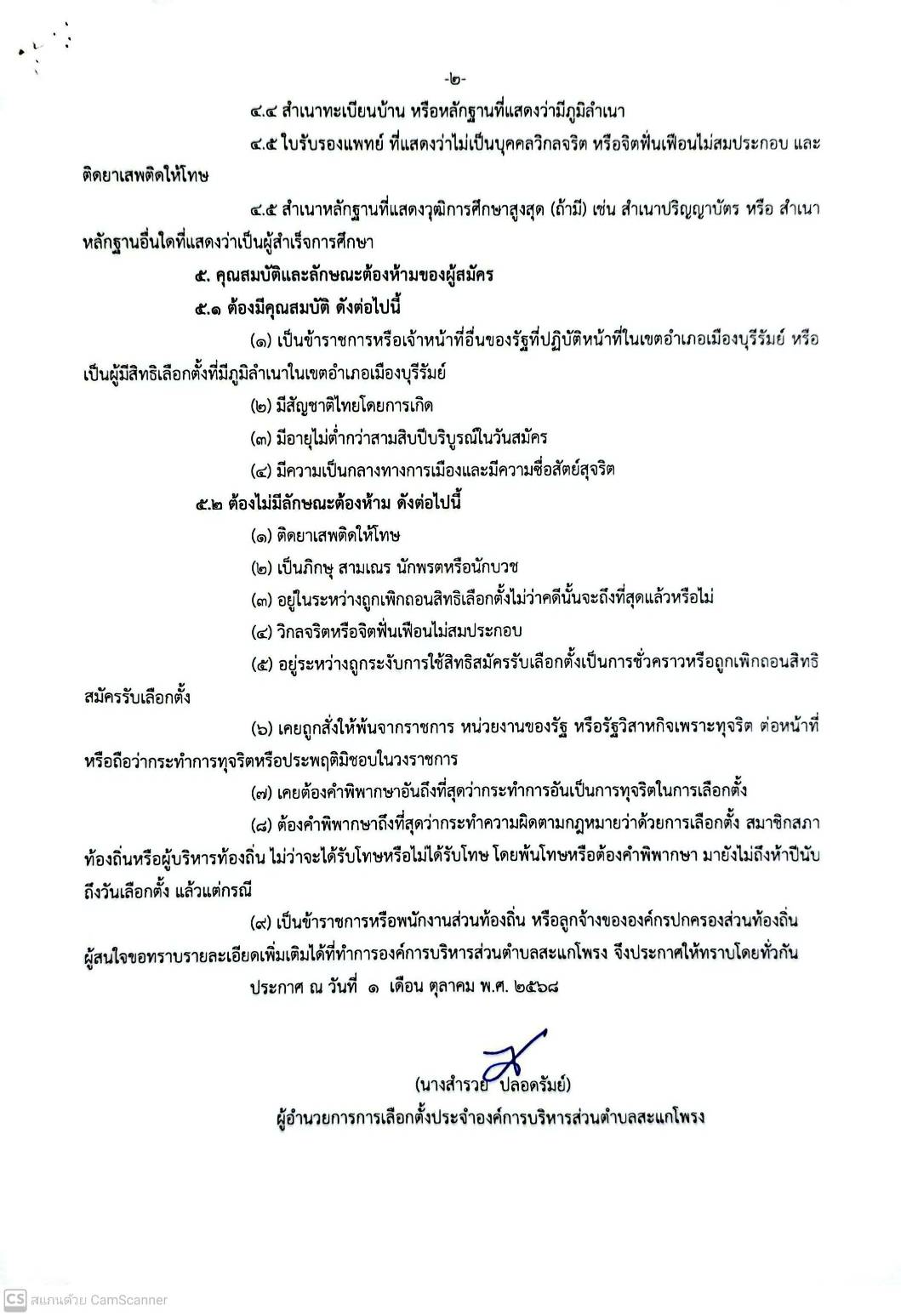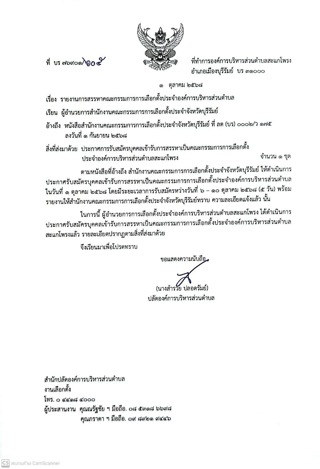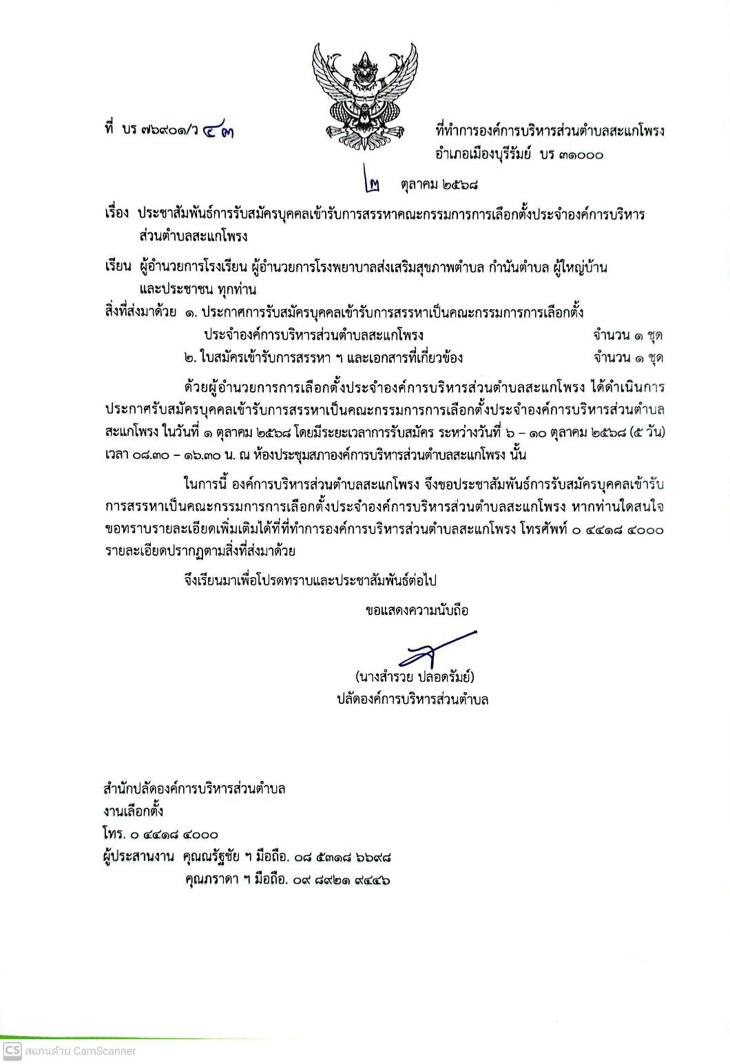 ประกาศ ผู้อำนวยการการเลือกตั้งประจำองค์การบริหารส่วนตำบลสะแกโพรง